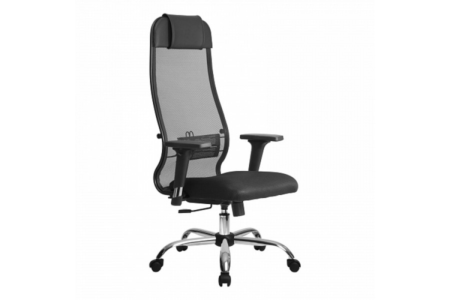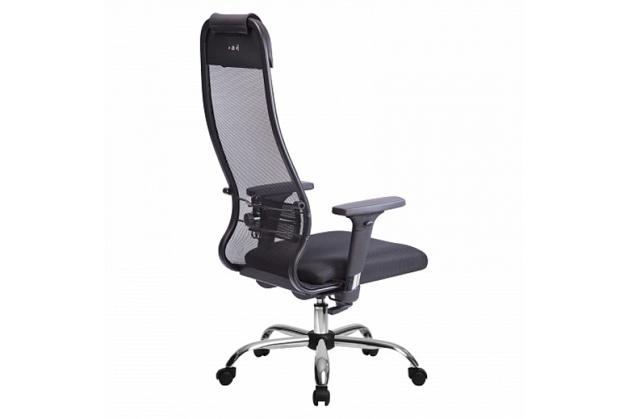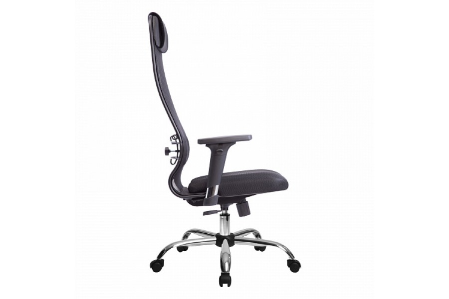 Спинка высокая с мягким подголовником, черное полимерное покрытие каркаса, ширина 475 мм