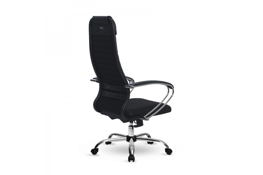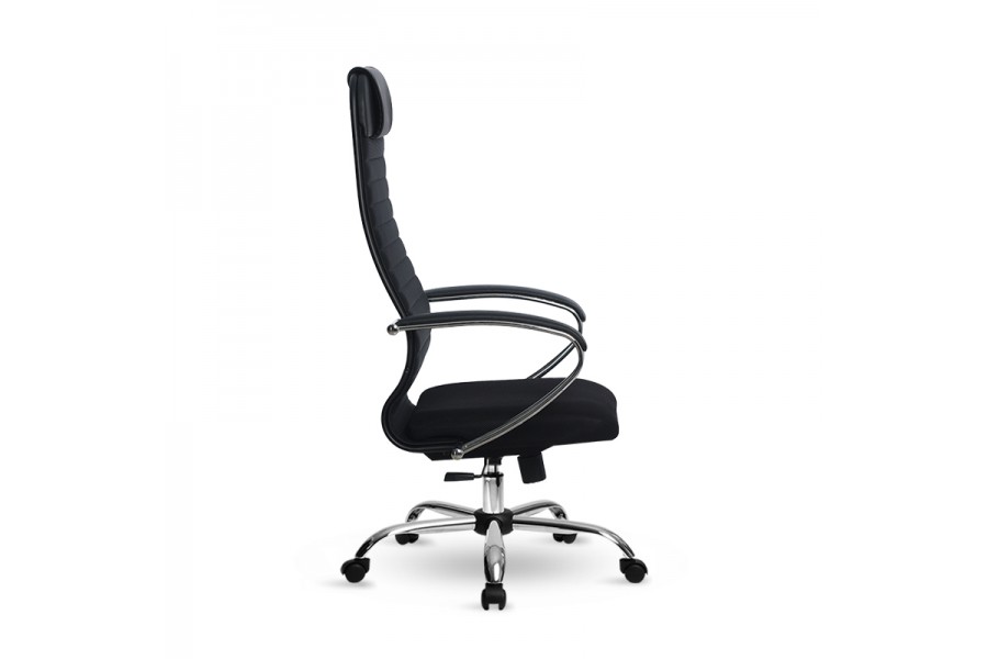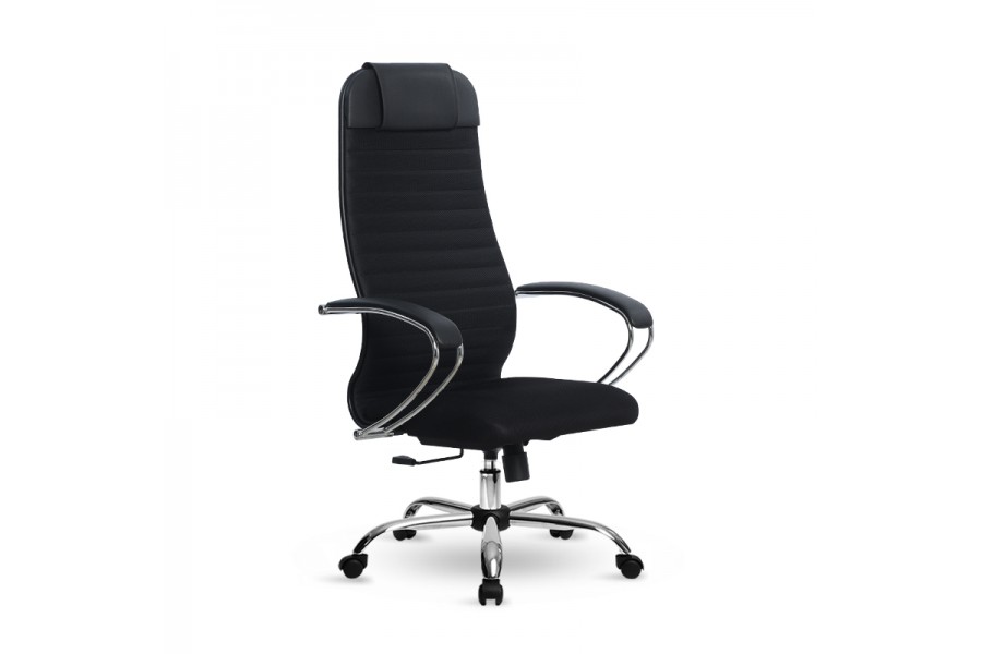 Спинка: высокая с мягким подголовником, хромированное полимерное покрытие каркаса, ширина 475 ммВид обивки спинки: сетка натяжная мягкая без прошивки. Подлокотники: стальные классические покрытые зеркальным хромом,обивка накладок: экокожа. Сиденье: мягкое обьемное на столярном каркасе, ширина 475 мм. Вид обивки сиденья: износостойкая сетчатая ткань без прошивки