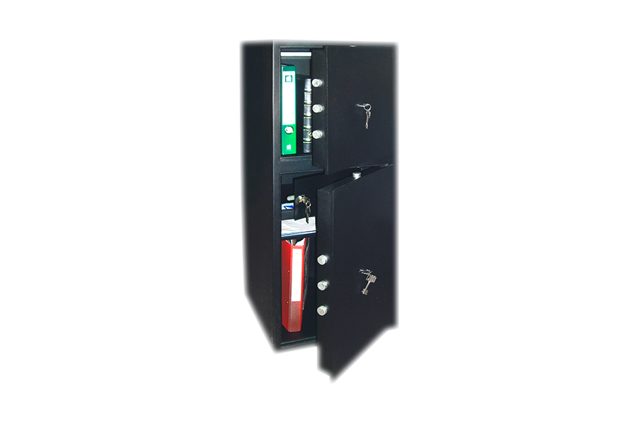 Сейфы имеют двустенный корпус с дверкой из стали 10 мм, оборудуются сейфовыми замками MAUER (Германия) высокой степени секретности с ригельной системой трехстороннего запирания. Диаметр ригелей составляет 24 мм.