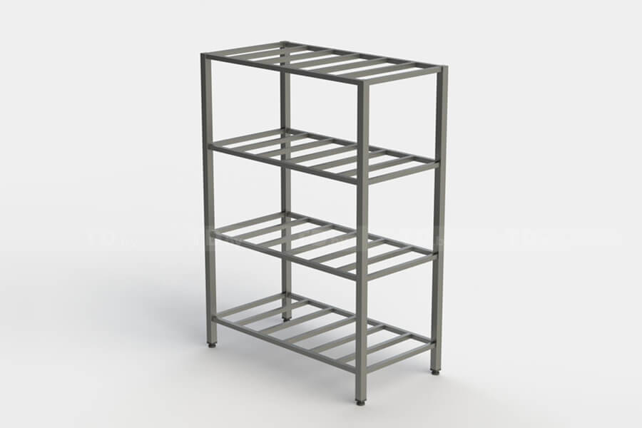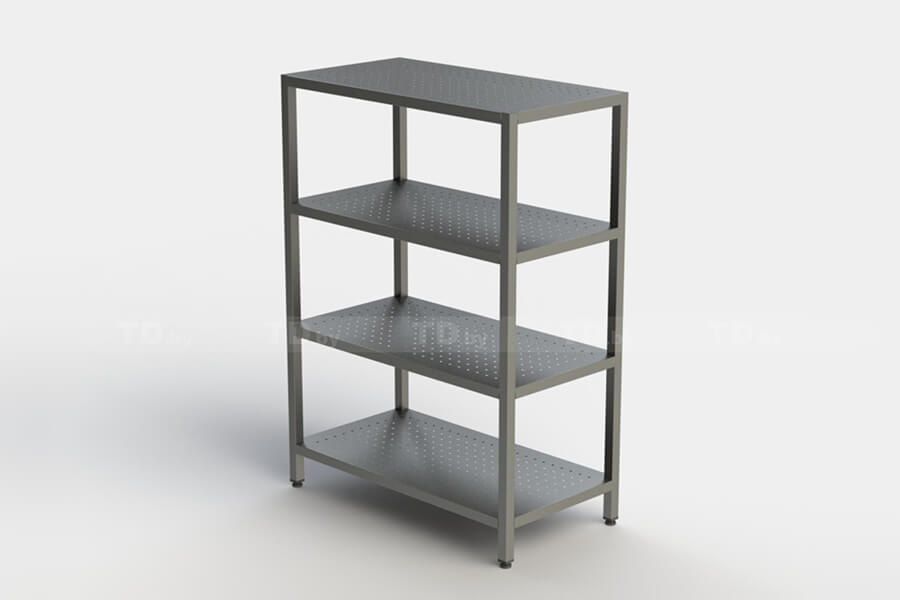 Сварные стеллажи изготавливаются полностью из нержавеющей стали. Стойки стеллажа изготавливаются из нержавеющей трубы 40*40мм, полки - из нержавеющей стали толщиной 1; 1,2; 1,5мм марки AISI 430 или AISI 304. Состоят из 4-х полок, имеют регулируемые по высоте ножки.