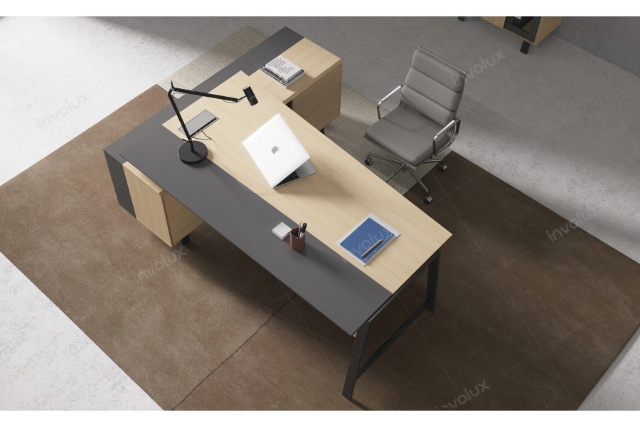 - Оригинальные металлические опоры для письменных и конференционных столов прекрасно сочетаются в едином стиле с двухкомпонентными столешницами в различных фактурах. Особенностью коллекции является скос вертикальных и горизонтальных кромок, а также отсутствие лицевой фурнитуры