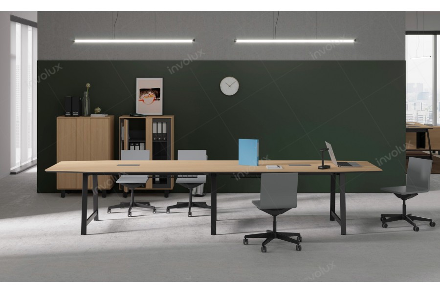 - Удобные и стильные столы для переговоров имеют три стандартных размера: 240 см., 276 см. и 388 см., все они шириной 100 см. Также предусмотрен специальный элемент для увеличения конференционного стола практически до неограниченной длины. Все стандартные конференционные столы комплектуются врезным «кабель-менеджером» производства компании «ASA» (Италия) для проводки и вывода кабелей на рабочую поверхность