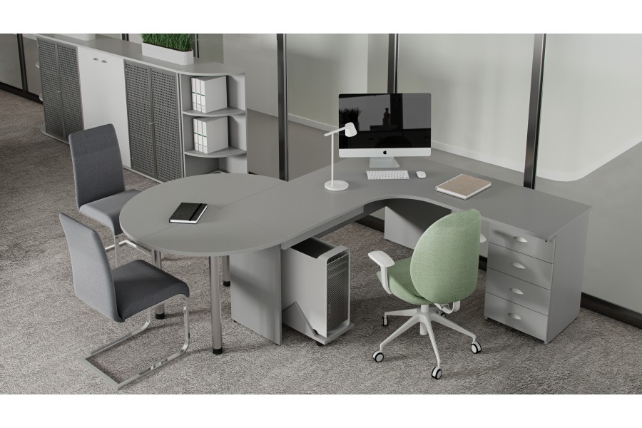 Использование качественных материалов, актуальный современный дизайн сделают любой офис функциональным и комфортным. Все предметы серии отлично компонуются и сочетаются между собой