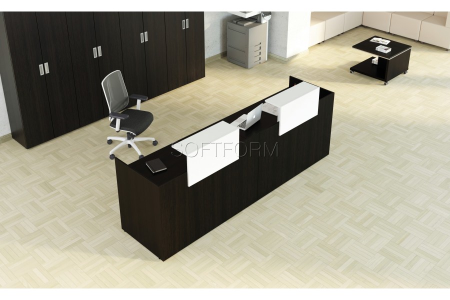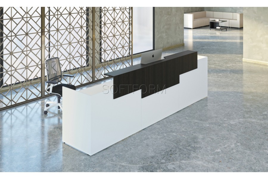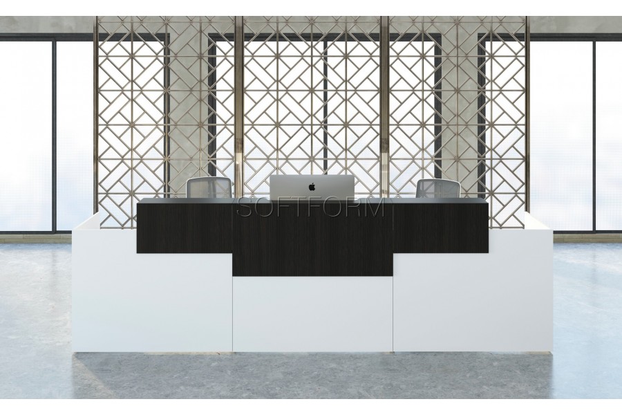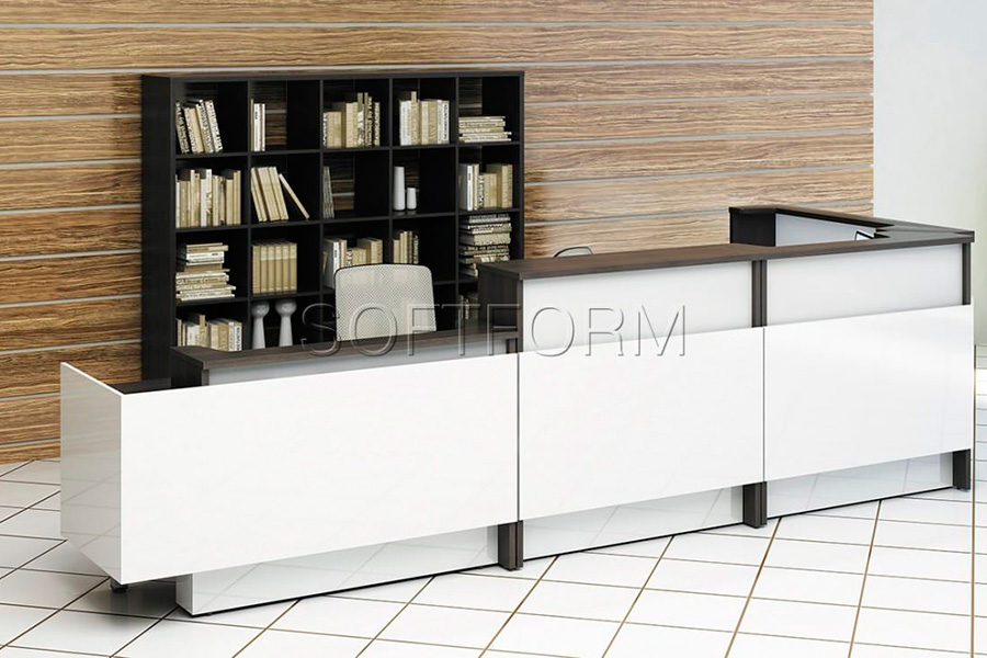 - Зеркальный цоколь подчеркивает оригинальную стилистику серии и визуально облегчает конструкцию рецепции;