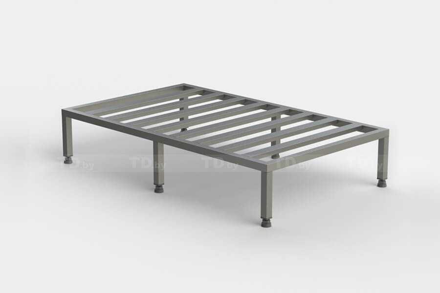 Подтоварник - подставка, на которой могут храниться продукты. В основе подтоварника лежит прочный жесткий каркас, выполненный из профильной нержавеющей трубы 25*25мм с 6 ножками, каждая из которых имеет регулируемую по высоте опору, позволяющую установить горизонтально подтоварник на имеющий неровности пол.