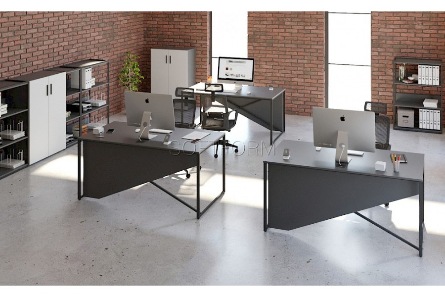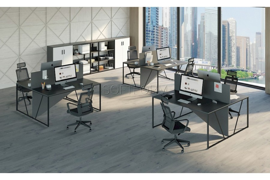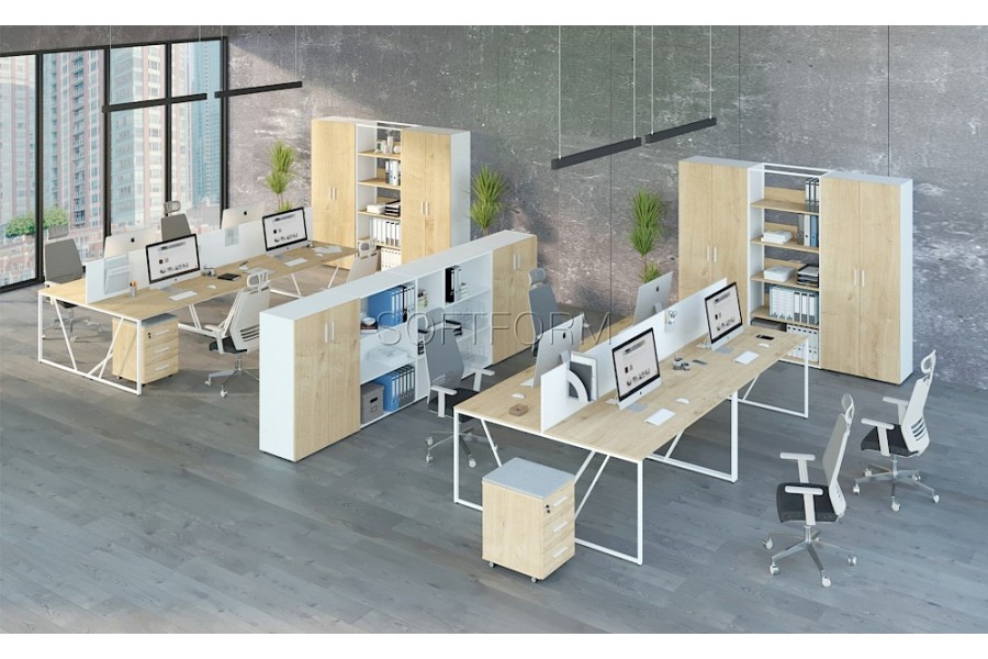 - Возможность формирования групповых рабочих мест на едином каркасе и установки перегородок между столами