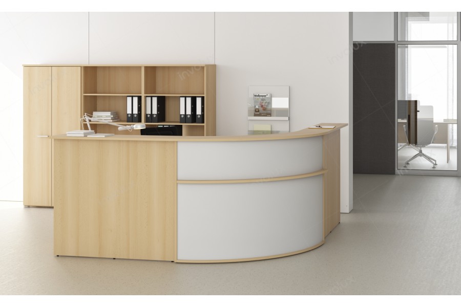 - Модельный ряд серии, помимо стандартных элементов, включает в себя прямые и угловые стойки-рецепции, стеллажи, столы конференционные и различные перегородки. Это позволяет полностью оборудовать офис под ключ, не тратя время на поиск подходящих решений для отдельных кабинетов.