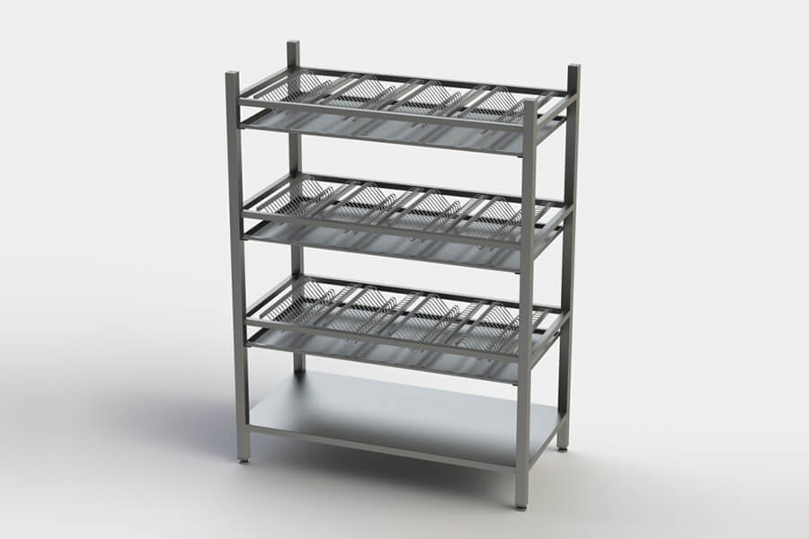 По техническому заданию заказчика изготовим стеллажи для посуды любых нестандартных размеров, установим любое количество кассет, расположенных в любом порядке.