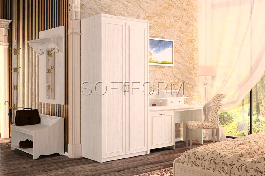 Модельный ряд элементов коллекции СТРЕКОЗА для обустройства гостиничных номеров включает все необходимое для полноценного хоть и временного проживания: односпальные и двуспальные кровати, вместительные шкафы, стеллажи, удобные комоды, столы с местом для фригобара, тумбы под багаж, полки, зеркала, вешалки.